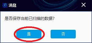 10、扫完完成后,弹出提示“是否保存当前已扫描的数据”,点“是”,等待保存结束。