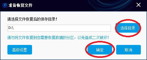注意:请不要将文件恢复到有数据需要恢复的分区里,以免造成二次破坏。