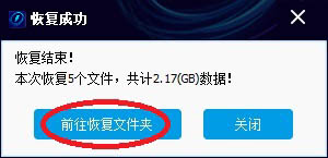 15、恢复完成,弹出提示信息。点击“前往恢复文件夹”,可以到恢复文件夹看刚才恢复的文件。