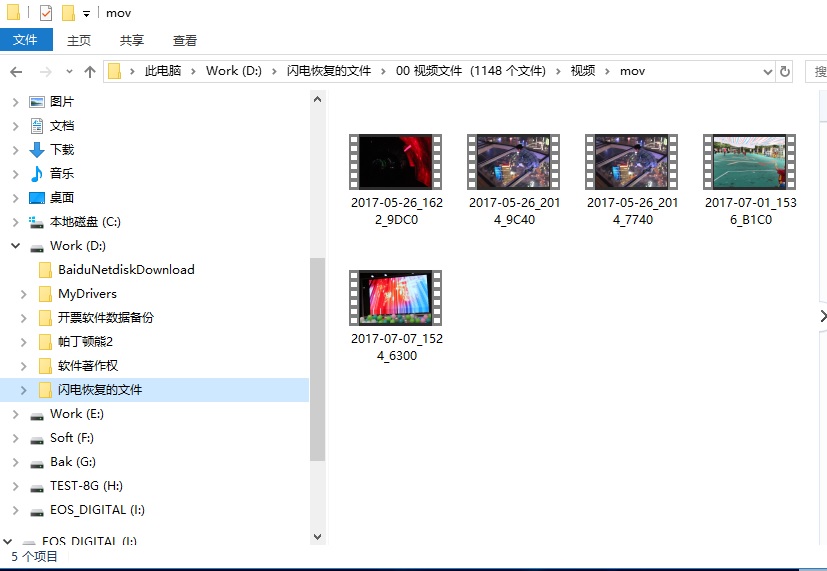16、下图为刚才恢复的文件。可以看到,刚才勾选的文件已经全部恢复成功,恢复出来的视频可以正常预览、打开。